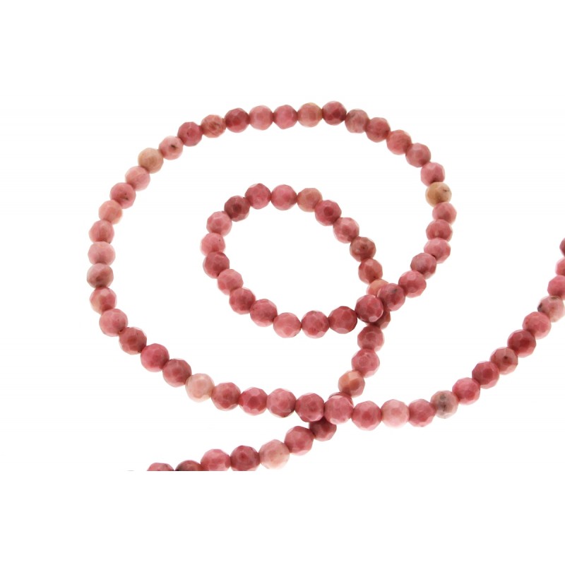 Βραχιόλι Ημιπολύτιμοι Λίθοι Ροδονίτη σε χρώμα ροζ και σχήμα σφαιρικό ταγιέ με Μέγεθος Πέτρας ~4 mm, Κούμπωμα Ασήμι 925