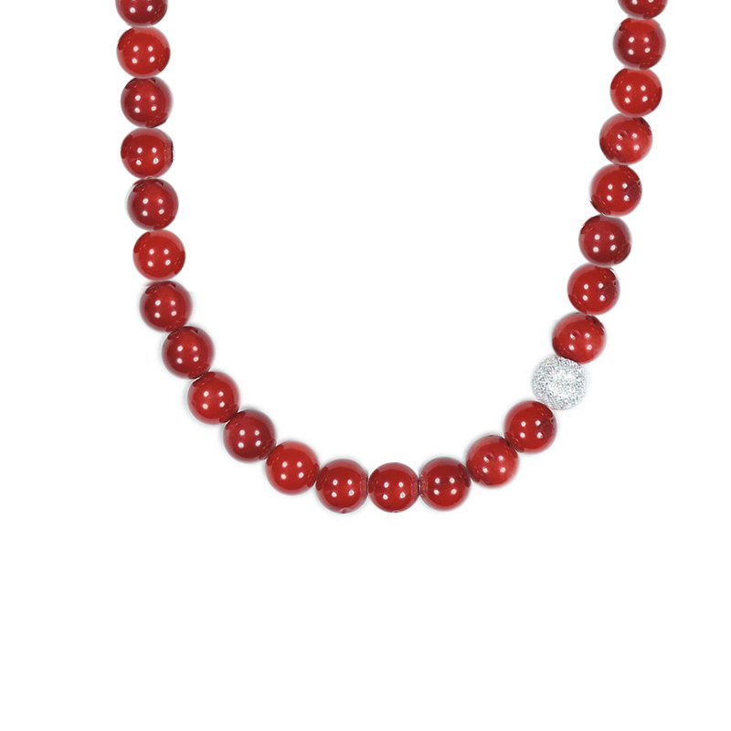 Κολιέ Κοράλλι 6mm σε υπέροχο κόκκινο χρώμα, Στοιχείο και Κούμπωμα Ασήμι 925.
