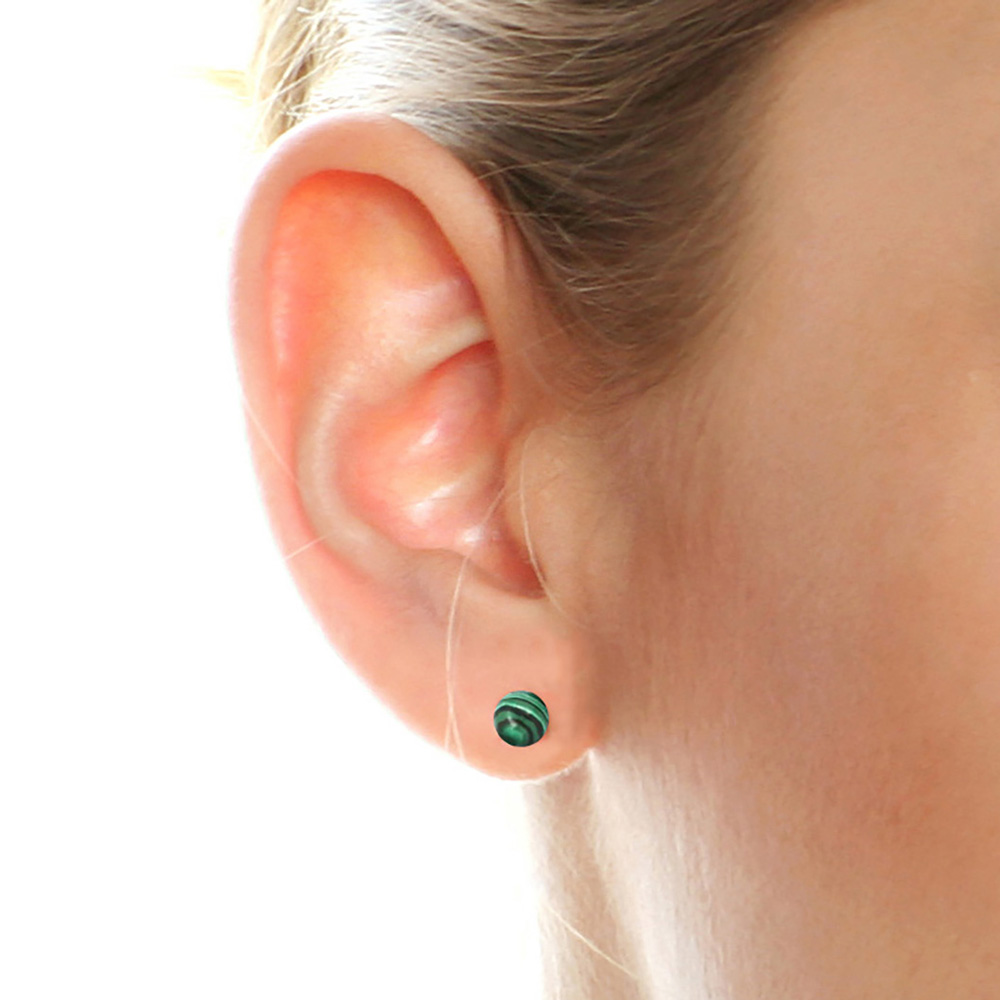 Ζευγάρι σκουλαρίκια Ασήμι 925, Ημιπολύτιμοι Λίθοι Μαλαχίτη (Synth.) και στυλ καμποσόν ημισφαιρικό.
